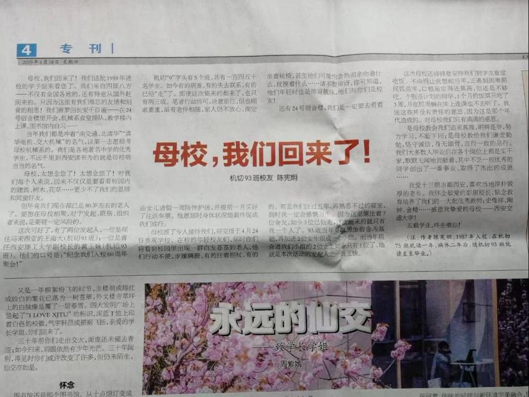 “我经常把《西安交大报》给我的伴侣看,告诉他们这是我的母校,这让我很骄傲。有一些结业的校友,我也会把给他们看。”近日,西安交通大学校报学生记者团通过电线级校友陈宪炯。电线岁陈宪炯校友的声音明朗温厚,如岁月冲刷过的河石。陈宪炯校友谈到现正在的糊口,他每日糊口纪律,除了陪同老伴,就是守着窗边那叠厚厚的、由《西安交大报》编纂部邮寄来的校报,他说,这是现在,带着他通往母校最安定的桥梁。 陈宪炯于1939年9月生于江苏省姑苏市,从小正在江南烟雨的浸湿中长大。受母亲的影响,陈宪炯自小对交通大学十分钦慕。1956年,交通大学响应党和国度“向科学进军,扶植大西北”的号召,内迁西安。正在1957年的盛夏,陈宪炯报考了交通大学,并最终被机械工程系登科。于是,陈宪炯怀揣着亲爱的登科通知书,挥别小桥流水的家乡,踏上开往西北的列车。绿皮车穿行过广宽平原,一贯西,窗外风光渐次由潮湿的绿意转为广宽的苍黄。他模糊记得第一次抵达西安坐时,劈面而来的炙热阳光。正在机械系进修时,陈宪炯接管了系统的专业学问教育,为改日后工做打下了专业根本。除了传授专业学问,学校对学生的糊口也很是关怀。陈宪炯回忆道:“我记得我刚来学校的时候不太顺应,可是学校教员都十分关怀我。”正在交大的几年工夫,昔时的江南少年已然深深爱上了黄地盘,血脉里也融入了交大人特有的那份坚韧。结业后,陈宪炯被分派至郑州一机部6院工做,六七年后,陈宪烔转而回抵家乡,调到姑苏从动化研究所,曲至1999年退休。工做忙碌,途遥远,母校交大便成了心中最深的惦念。正在陈宪炯几十年的工做履历中,母校交大的培育带给他的习惯取学问一直相伴着。陈宪烔正在工做之余承担着日文翻译工做,这得益于他正在交大培育的过硬学问本事。陈宪炯说:“交大教给我的不只仅是书面的学问,更有着切身实践的认实取细心的立场。”这带给他的影响深远而绵长。有一次出差陈宪炯再次回到陕西,回到阔别已久的母校。再一次安步正在校园里,再一次走正在兴庆宫这同样充满交大回忆的处所,他心里磅礴又冲动。之后由于工做、身体各种缘由,陈宪炯没无机会常常回到母校。身虽不至,而心常系,陈宪炯取交大的故事一直没有中缀。陈宪炯曾饱含着对母校的密意,了一篇《母校,我们回来了!》,这篇文章颁发正在2019年4月18日的《西安交大报》上,从此他取校报结缘。校报编纂部也从此取陈宪炯起头了持久的联络,一期不落地寄给了这位心系母校的学子。 现在,年过八旬的陈宪炯因老婆需持久住正在护理院,也随之搬入护理院安放了下来。陈宪烔常常正在护理院勾当之余看校报编纂部寄来的各期校报。“老啦,出远门未便利了,”陈宪炯正在德律风里慢慢道来,声音全是安然平静的沉淀。每当翻起那些,看着母校比来发生的各种事,陈宪炯说就像回到了母校交大,听到梧桐叶沙沙做响。他描述《西安交大报》是“本人取母校毗连的桥梁”,可是那些印着母校动静的纸页让本人感受从未分开母校。陈宪炯说,常常想起大学糊口,老是感伤,大学的教育不只教授了他专业学问,更多的是帮帮他培育了优良的风致。他寄语交大的学弟学妹们:“要勤奋进修专业学问,为祖国扶植添砖加瓦;要终身进修,紧跟时代程序;要学会,心怀母校、心系祖国。”。