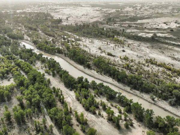 正在距离库尔勒市约70公里的群尔库木戈壁腹地,一条延绵40公里的固沙河如翡翠玉带般贯穿沙海,汩汩着两岸的胡杨树,正在黄沙中斥地出朝气盎然的绿色廊道。这全面积约960平方公里的戈壁,是塔里木盆地边缘典型的荒凉化区域,影响着库尔勒市的生态平安取宜居?。